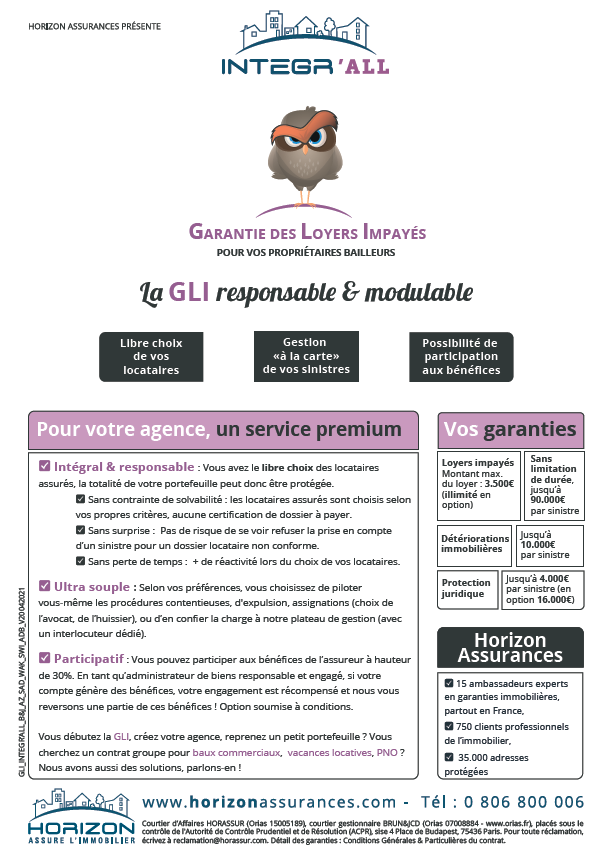 Contre les dommages aux biens du propriétaire, incendie, gel, dégât des eaux... Relogement à la suite à un sinistre garanti. Contre les dommages matériels causés aux voisins et tiers. Contre les dommages accidentels causés à l’intérieur du logement jusqu’à 2500€